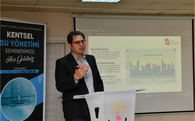 İzmir Katip Çelebi Üniversitesi Orman Fakültesi Havza Amenajmanı Anabilim Dalı Başkanı Dr. Öğr. Üyesi Ufuk Özkan’ın konuşmacı olarak yer aldığı seminerde su ve Çiğli konuşuldu. Seminerde, Çiğli'nin çevresel, sosyal ve ekonomik dinamikleri ele alınarak bölgenin sürdürülebilir kalkınma potansiyeli üzerinde duruldu. Dr. Özkan, özellikle havza yönetimi ve çevre koruma konularında önemli bilgiler paylaşarak, katılımcılara bölgenin doğal kaynaklarının etkin kullanımı ve korunması için önerilerde bulundu.