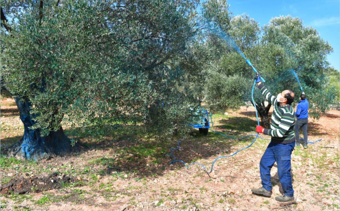 Gürkan Özkan ise, “Uygulamaya geçen yıl başladık. Yarından itibaren zeytinlerimize yeni uygulamamızı yapacağız. Bizim zeytinimiz susuz yetiştiği için bir yıl var yılı, bir yıl yok yılıydı. Bizde ekipman yoktu, bordo bulamacını almak külfetliydi. Ama hibe olunca çok iyi oldu. Bordo bulamacının içinde kimyasal olmadığı için zararı da yok. Uygulamaya devam edeceğiz” dedi.